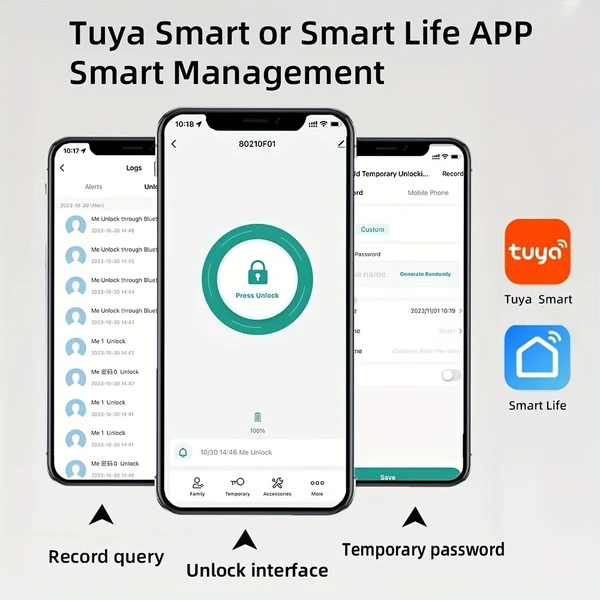 Tuya Fingerprint Door Lock With Lock Smart Fingerprint Door Handle With App Control And Key Biometric Door Lock, Fingerprint Door Lock For Bedroom, Front Door, Home, Apartment, Office And Garage Black